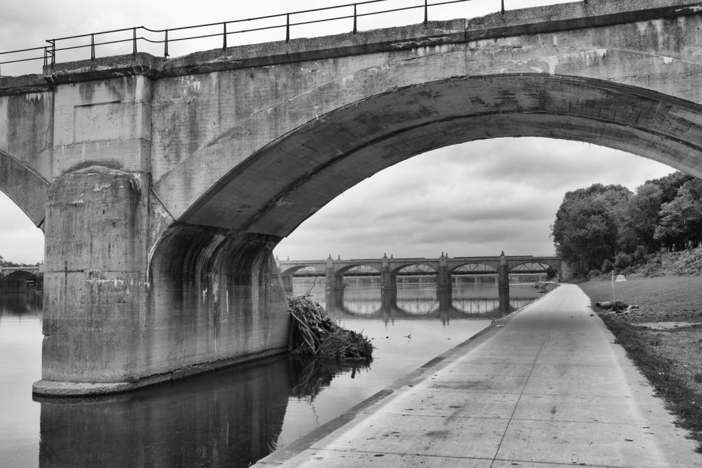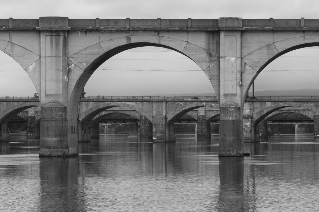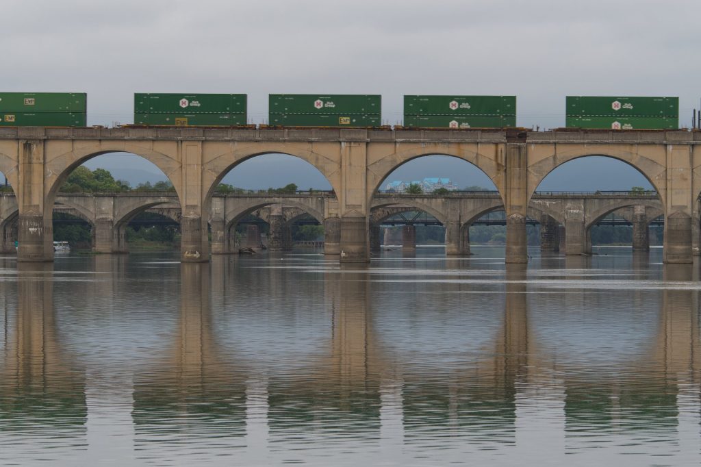 Watch trains crossing river