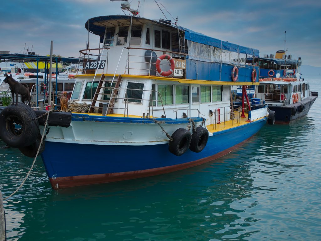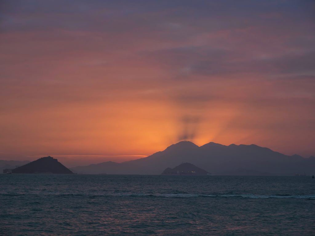 Lighting was not perfect but I could not pass this brave dog on this colorful boat. I was running to the promenade , where I can see Sun going down just behind Lantau Island.